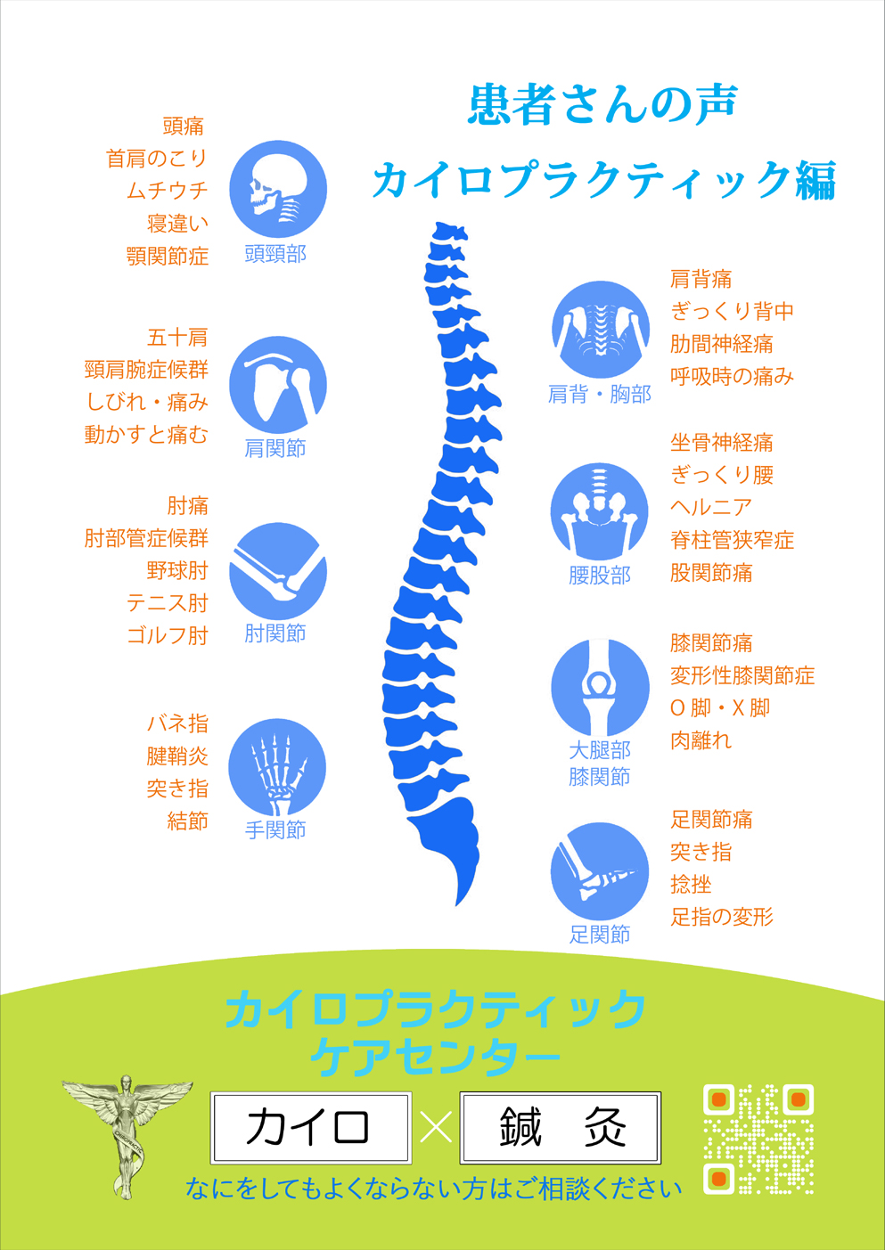 | R7/12/23 患者さんの声を集めたPDFを掲載しました。カイロ・鍼灸ともにあります。 |